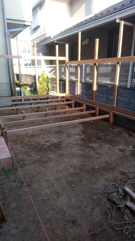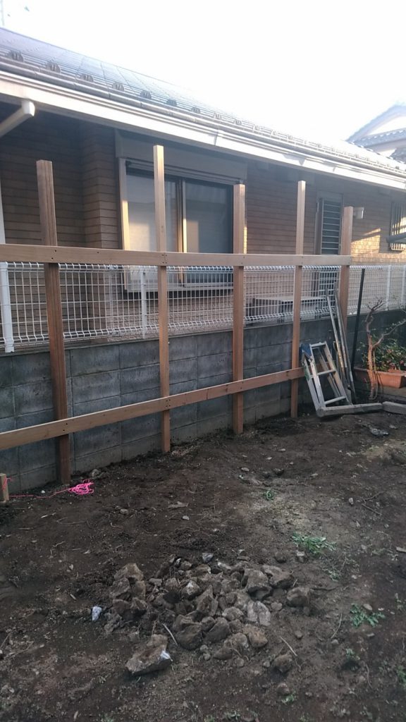 今回、ウッドデッキと共に周囲からの目隠しの為ウッドフェンスも設置していきます。