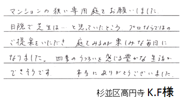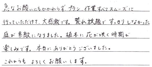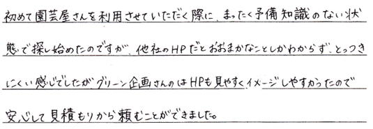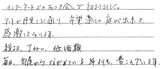 「細かいことまで、相談にのっていただき、求めていた素晴らしいお庭ができました。」